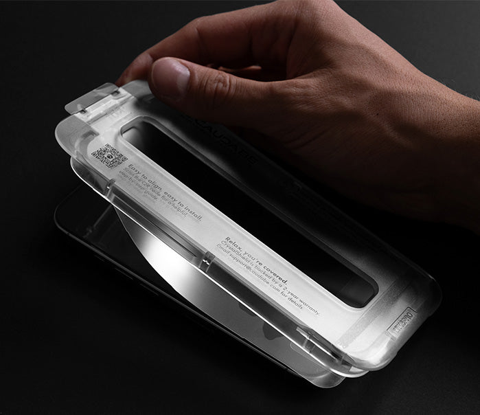Our most advanced screen protection yet, enhanced with anti-reflective clarity. Made from premium aluminosilicate glass, Elite AR is over 2x stronger and more scratch resistant than standard screen protectors. An advanced anti-reflective coating significantly cuts glare, improving screen clarity even in bright conditions. An electroplated oleophobic coating resists fingerprints and smudges, while a redesigned installation tray ensures flawless alignment with every Caudabe case.
